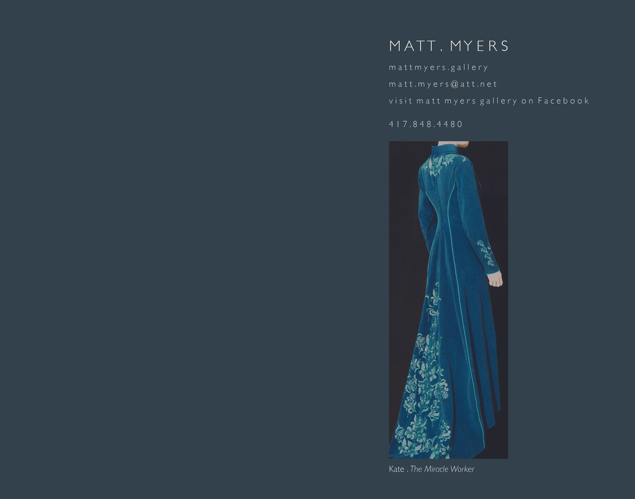 Matt Myers is an Artist and Designer working in a variety of disciplines, creating Art, Paintings, Drawings, Tile Mosaics, Glasswork, Historical and Theatrical Costumes, Wearable Art, Fashion, Interior and Exterior Design, Graphic Design, Illustration, and Wearable Art.